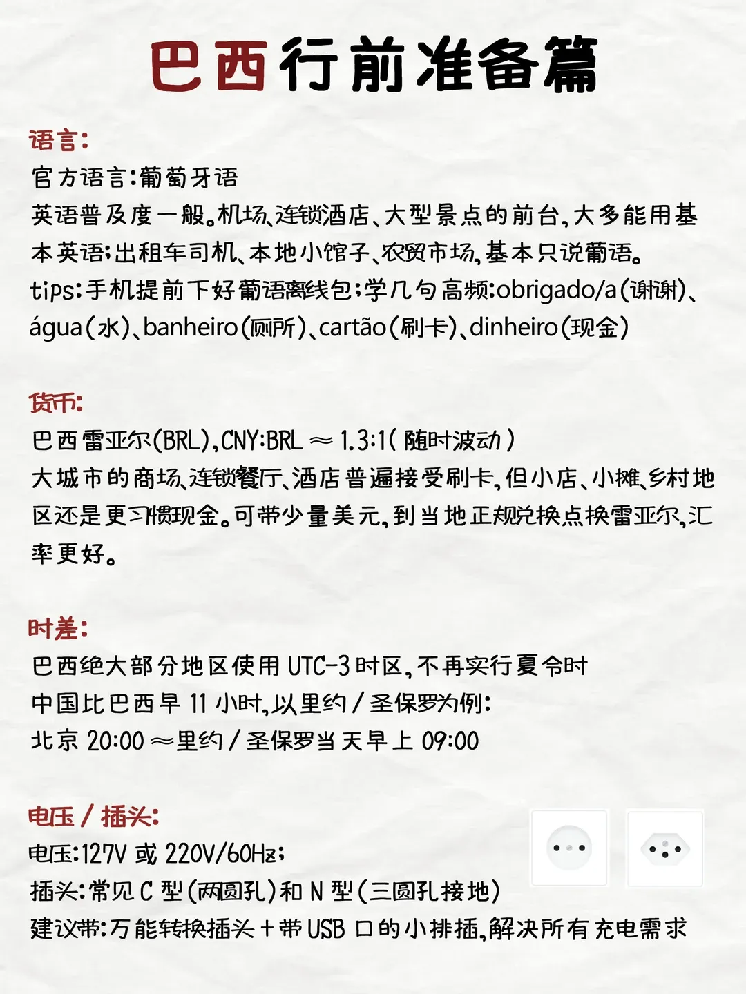 语言与沟通 巴西官方语言为葡萄牙语,英语普及率在城市旅游区尚可,但在其他地方较低。提前学习一些基础葡语问候语,或准备好翻译软件,将大有帮助。