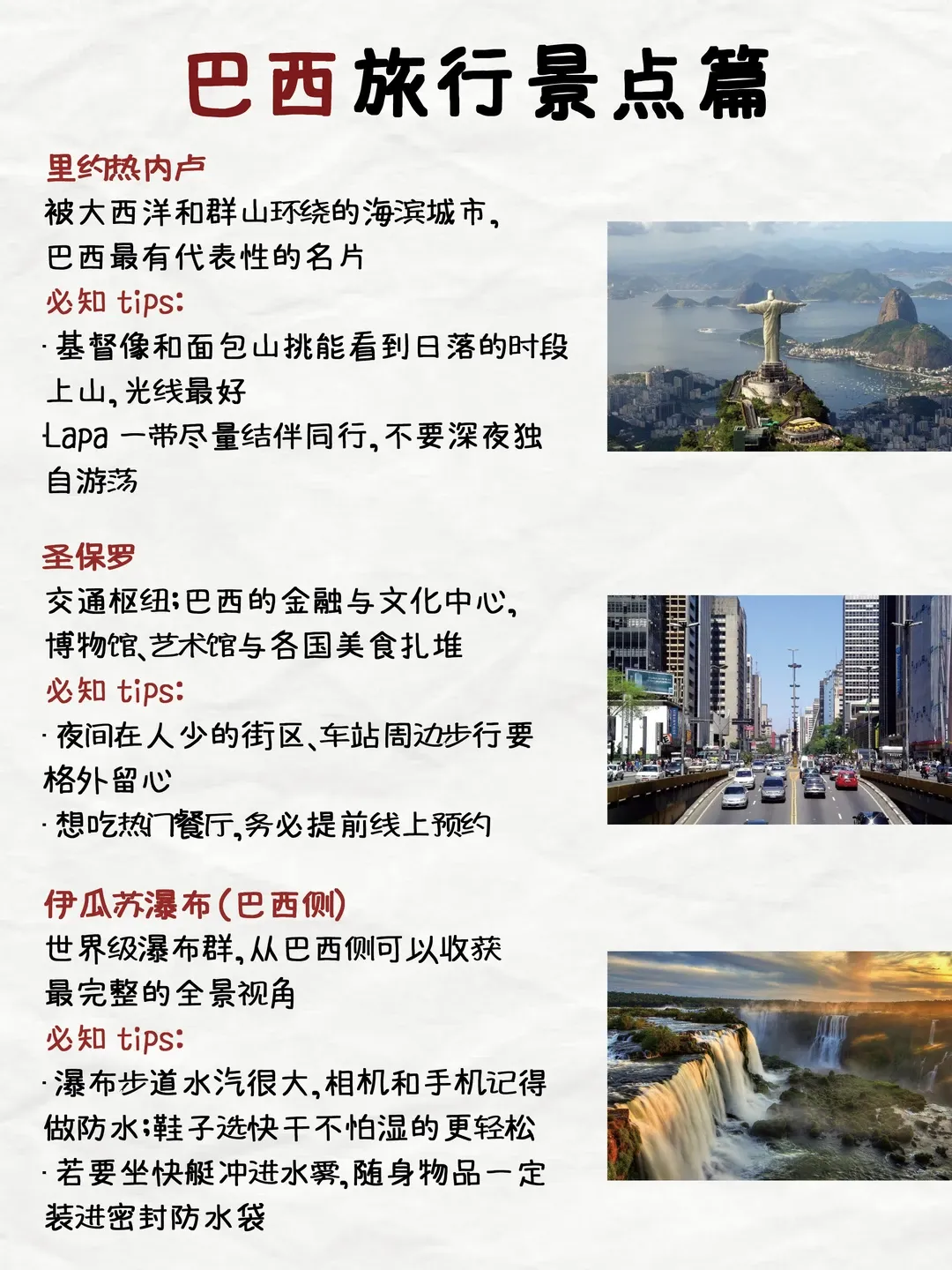 总结 巴西的突然免签,无疑为中国旅行者推开了一扇通往全新世界的大门。从都市的现代节奏到雨林的原始脉搏,从瀑布的雷霆轰鸣到桑巴的奔放律动,这个国度承诺的是一场全方位感官盛宴。 尽管长途飞行、文化差异和安全意识仍是需要认真对待的挑战,但巴西所蕴含的丰富与精彩,足以回报每一位远道而来的探索者。当签证的壁垒消失,是时候将目光投向地球的另一端,开始规划一场属于你的巴西冒险了。