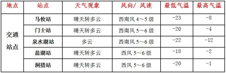 未来24小时主要交通站点天气预报