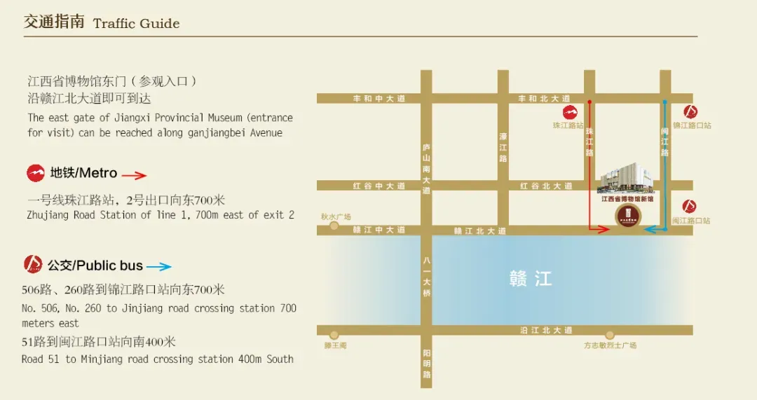 交通:乘坐地铁3号线至八大山人站,往定山路向东步行1公里,由定山桥入馆