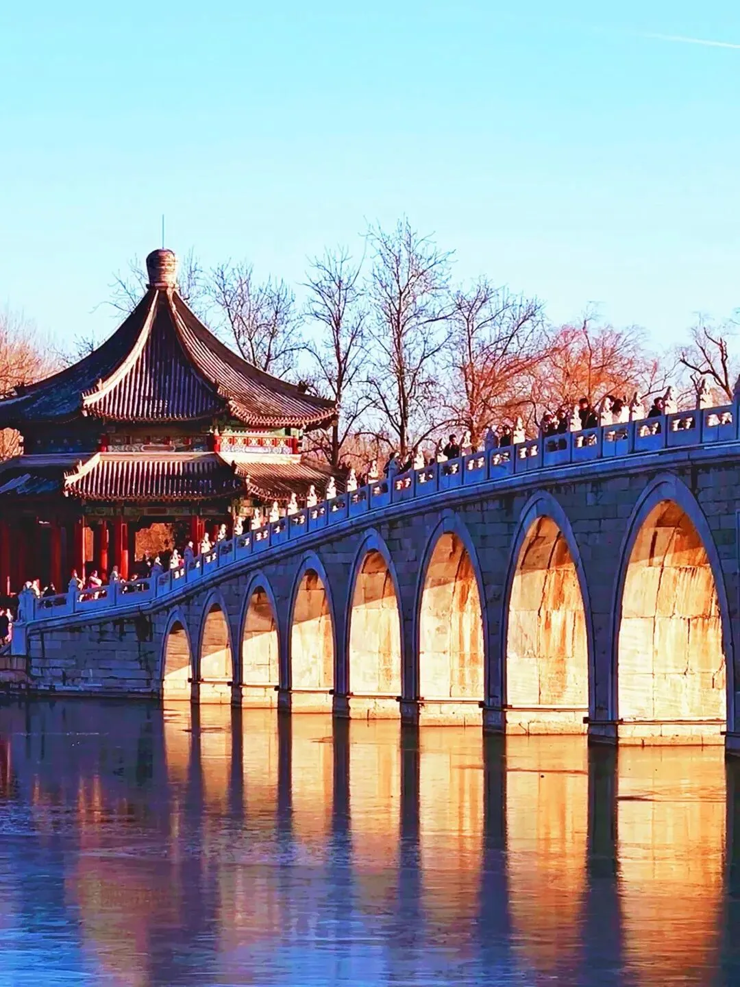 金光穿洞:冬至前后12月21日–1月20日,日落时分(16:45–17:15),阳光穿透十七孔桥17个桥洞,金光如线