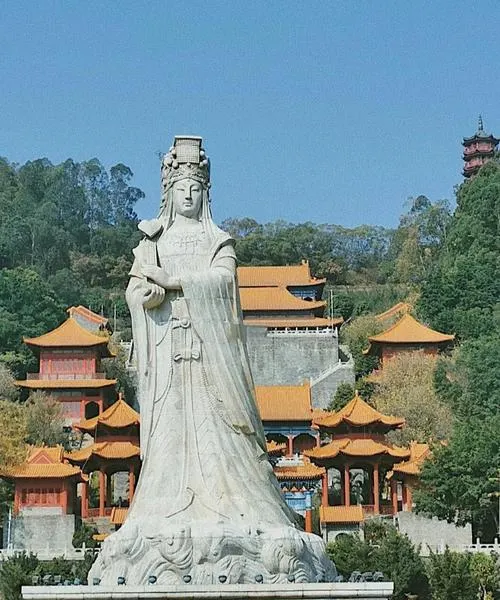 7500亩是什么概念,差不多500个足球场那么大,这已经不是一个景点的体量,是一个信仰系统的物理呈现,你站在山脚下往上看,天后宫的主体建筑群层层递进,从南岭塔到天后广场,再到正殿,每一层都比前一层高出十几米,这种建筑布局在岭南地区几乎找不到第二个,因为它不是在建一座庙,是在建一个信仰的垂直世界。