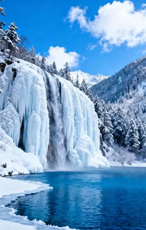 九寨沟:冬季冰瀑与彩林