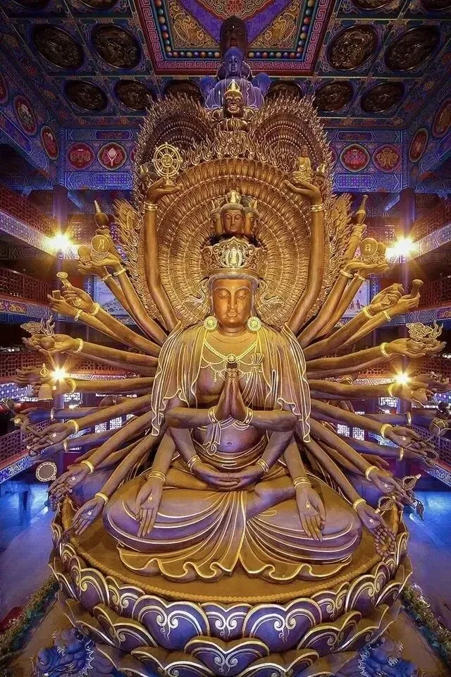 这是亚洲最大的佛教丛林之一,特别大!重点看观音殿里的千手观音——整块金丝楠木雕的,金光闪闪,超震撼!
