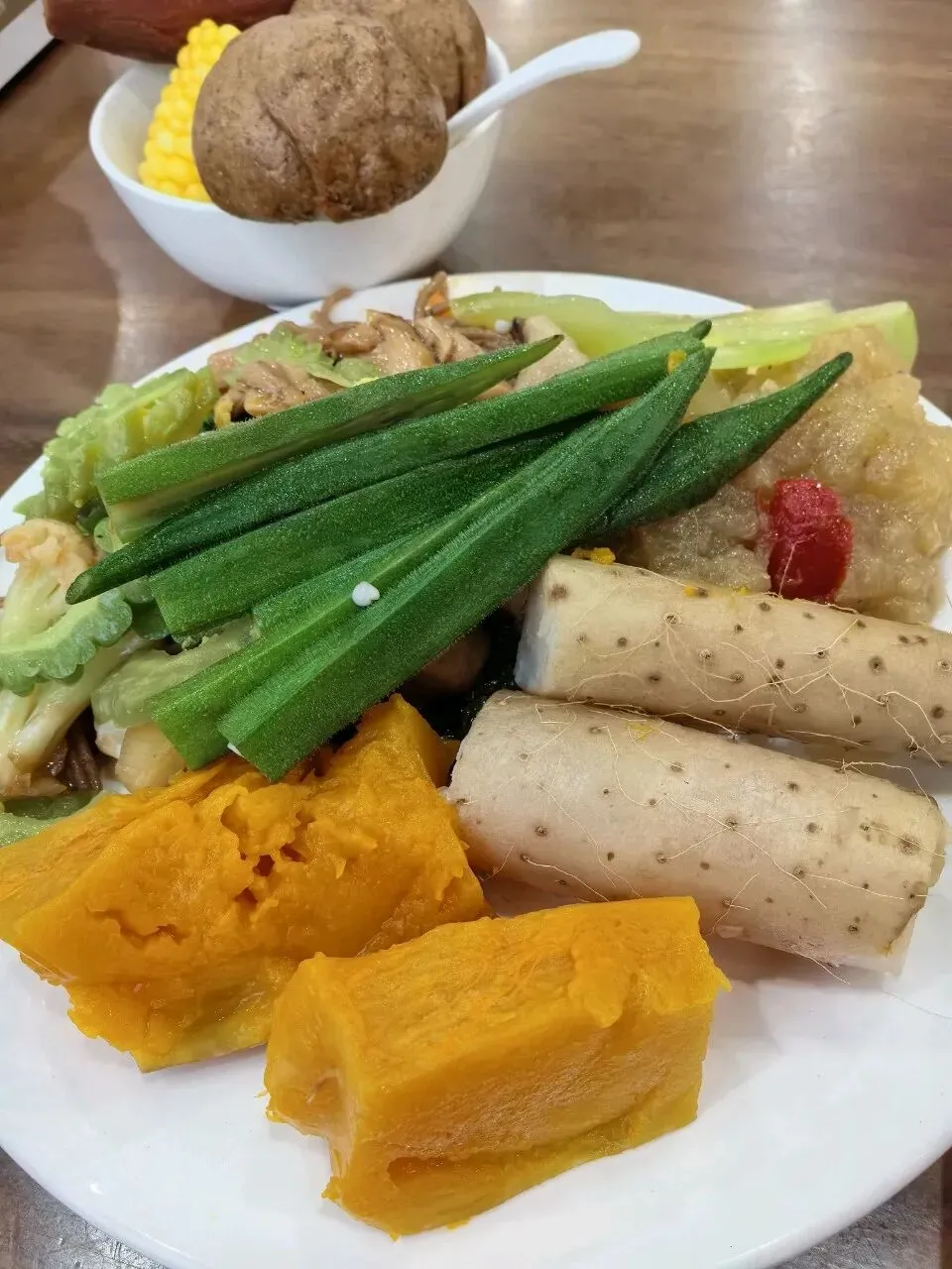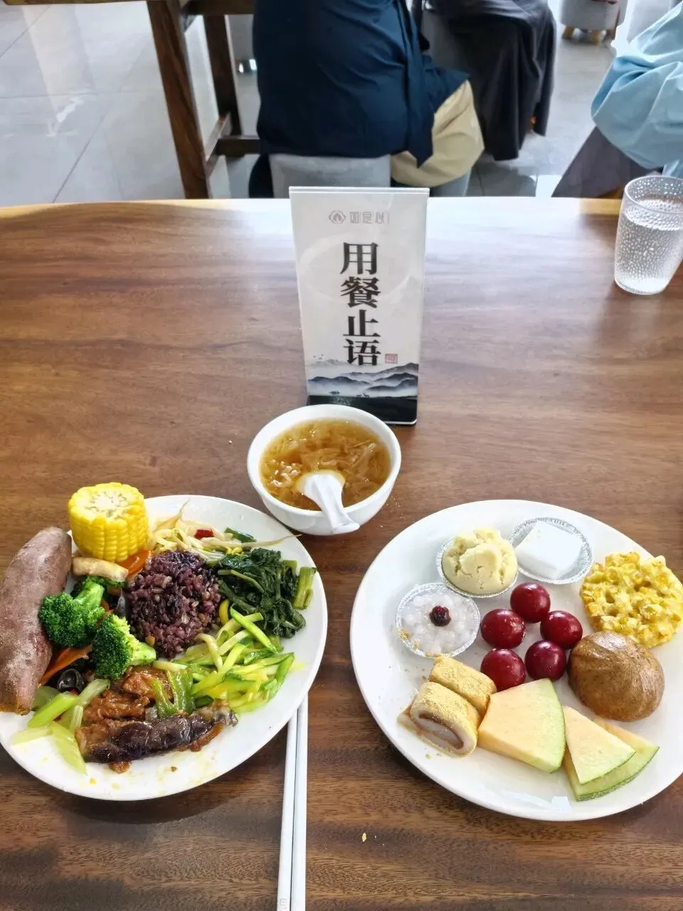 野菜、粗粮、养生汤,味道清淡不油腻,吃着也健康。