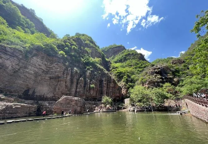 天河山这个地方,被称为中国爱情山,因为传说牛郎织女的故事就发生在这儿,但天河山的真正价值不在于这个传说,在于它是太行山里为数不多的峡谷型景区,山不算高,但峡谷很深,水流很急,这种地形在北方真的少见,大多数北方的山都是光秃秃的,天河山因为有水,植被特别好,走在峡谷里会有种在南方山区的错觉。