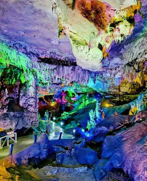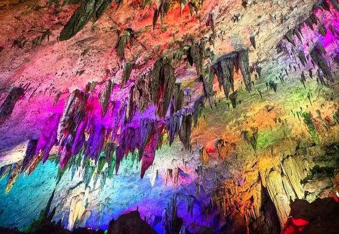 洞里的水道有三公里多,你坐在船上,头顶是各种形状的石头,脚下是完全看不见底的水,船家会跟你讲这块石头像什么那块石头像什么,但说实话那些都不重要,重要的是那种被包裹在地下空间里的感觉,安静到你能听见水滴落的声音,冷到你会庆幸自己带了外套,这种体验在别的溶洞很难碰到,因为大部分溶洞要么太商业化搞得跟游乐场似的,要么太原始根本没法深入,隐水洞正好卡在中间那个位置,既能让你看到足够野的东西,又不至于让你觉得危险。