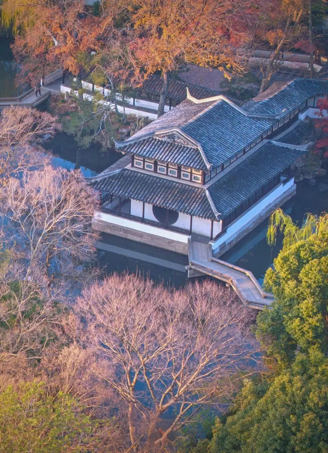 其中,拙政园作为苏州现存最大的古典园林,始建于明正德年间,以水景为核心,整体布局疏朗自然,亭台楼阁依水而建,展现了“虽由人作,宛自天开”的至高境界。