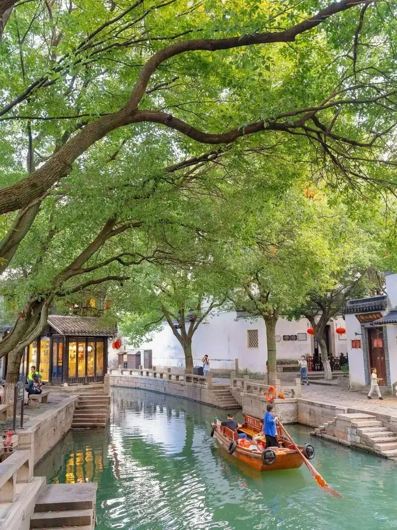在周庄,除了参观沈厅、张厅等深宅大院。还可乘一艘摇橹船,穿行于水巷之间,两岸粉墙黛瓦、临河水阁、河埠廊坊依次展现,特别是入夜后的游船更能沉浸式体验水乡的静谧与诗意。