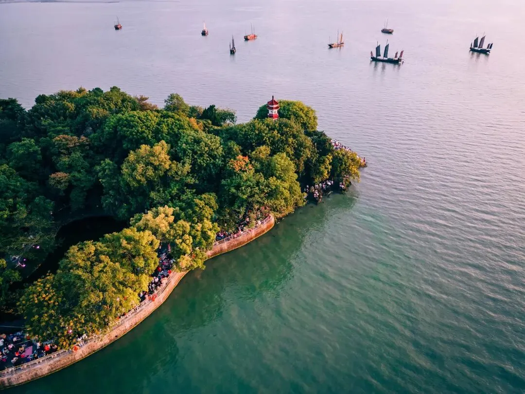 景区内河道纵横,与太湖烟波相连,游客可乘古船游太湖,从水上视角欣赏古典建筑与湖光山色的交融之美。