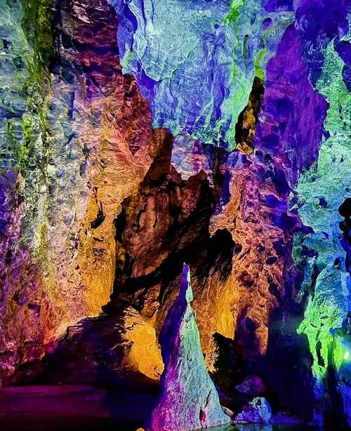 溶洞这东西,国内哪都有,但黄仙洞这个地方,会刷新你对溶洞的认知,因为它把一个地下空间玩出了四季的概念,洞里有春夏秋冬四个主题区,每个区域的钟乳石形态、色彩、气温都不一样,这不是靠灯光硬搞出来的效果,是地质结构本身就形成了这种分区,你走进去能明显感觉到温度的变化,有的区域湿热,有的区域凉爽,这在其他溶洞里很少见。