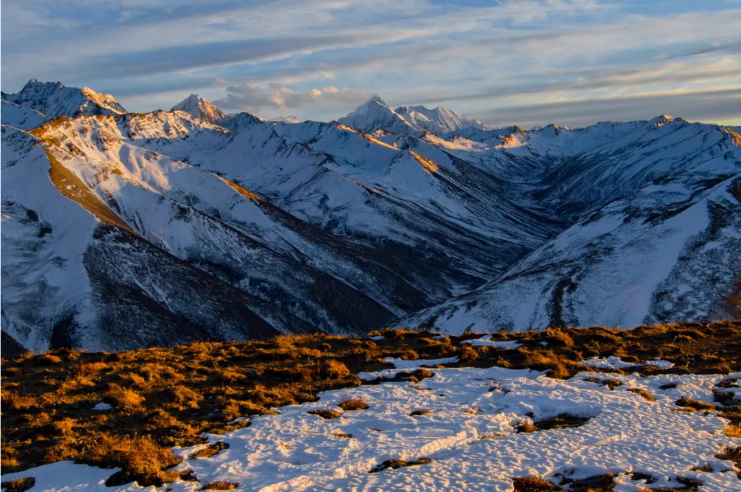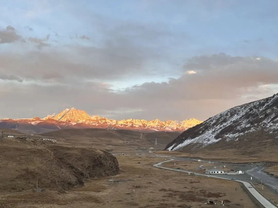 塔公草原附近的有一处观景点——姑弄村,是看日照金山的好地方,从塔公草原到姑弄村大概10公里左右,距离康定市区约1.5小时车程,这里清净又出片。