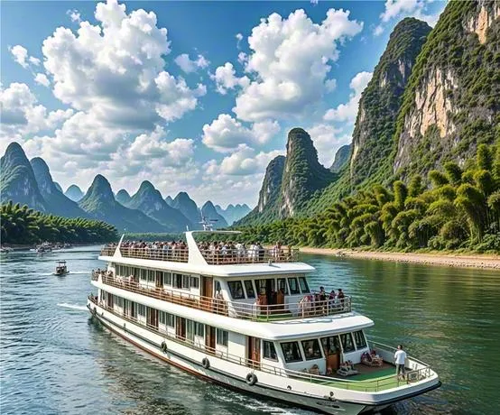 春节坐船游漓江的人不算少但也不算多,这个季节水位稍低江面更开阔,两岸的喀斯特地貌在冬日阳光下层次特别分明,但漓江真正值得说的不是风景有多绝,是它让你重新理解什么叫景区该有的节奏。船开得不快不慢,江边村落偶尔冒出炊烟,渔民在竹筏上撒网,水牛在岸边吃草,这些画面组合在一起会让你觉得漓江不是一个被框起来的景区,它还是一条真实的江,有人在这里生活劳作,游船只是从旁边经过而已。