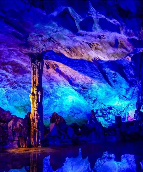 芦笛岩春节去的人不多,这个溶洞一年四季温度恒定景色也不会因为季节变化,但正因为如此,它反而成了春节期间一个特别的存在,因为当外面所有地方都在强调年味强调热闹的时候,芦笛岩里是安静的,那些钟乳石花了几百万年形成,不会因为是春节就有什么变化,你走在洞里会有一种时间错位的感觉,外面是2026年的春节,洞里是几百万年的地质时间,这种对比很强烈。