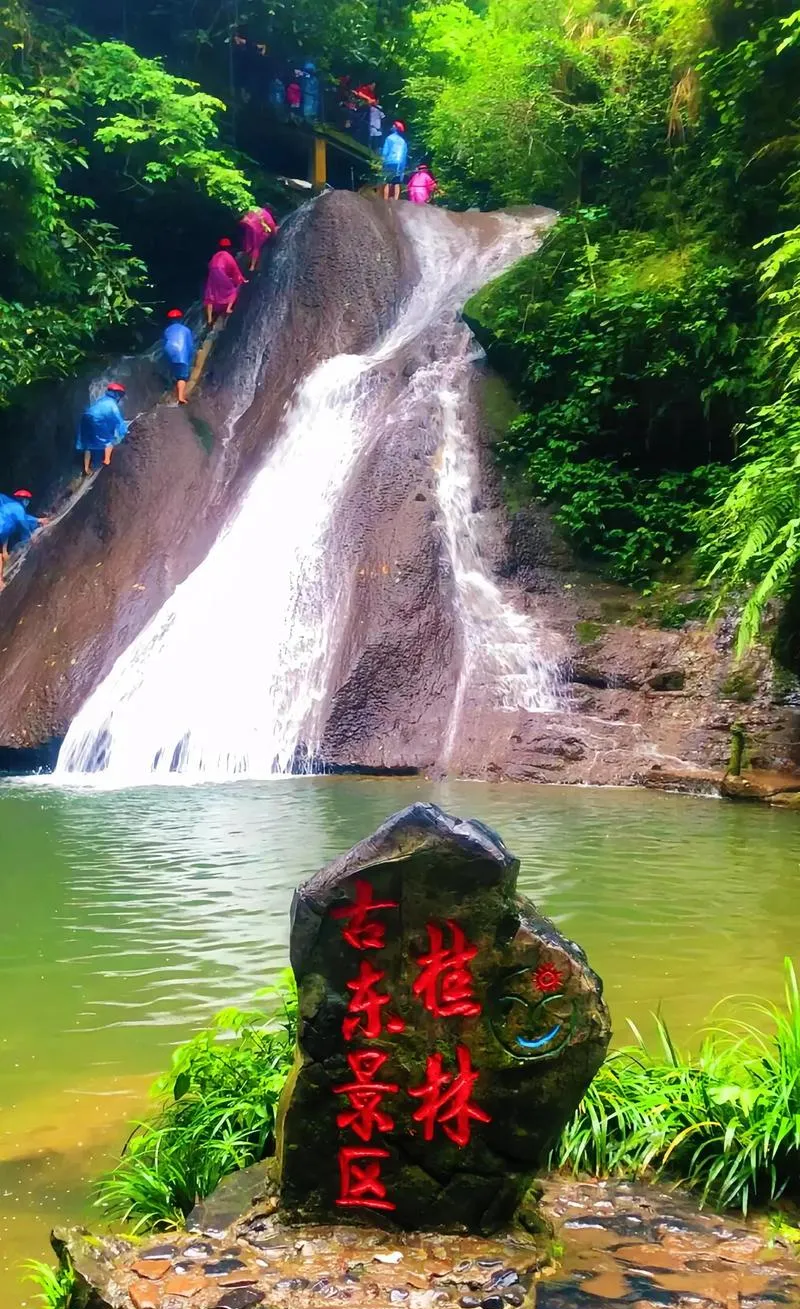 古东瀑布春节的水量不是最大的,但可以攀爬,这个体验在春节期间特别有意思,因为大部分人过年都是吃吃喝喝走亲访友,突然去爬个瀑布,会有一种打破常规的新鲜感,而且古东瀑布不是那种只能远观的景点,你可以穿着草鞋踩着水从瀑布底下一级一级往上爬,这种身体参与度很高的活动,会让你对这个地方的记忆特别深刻,不是看了什么拍了什么,是你真的在这里做了什么。
