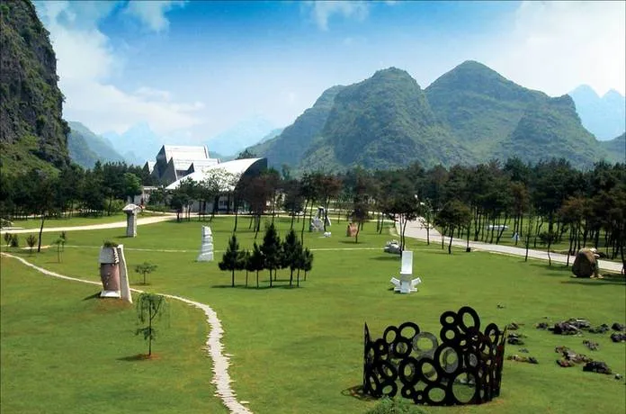 愚自乐园是个很特别的地方,建在漓江边上,里面有很多石雕作品,但不是传统意义上的景区,更像是一个艺术家的私人空间被开放出来,春节去的人不多,园子里很安静,你可以慢慢走慢慢看,那些石雕有些很具象有些很抽象,摆放得也不刻意,就这么随意地散落在园子各个角落,和周围的自然环境融在一起。