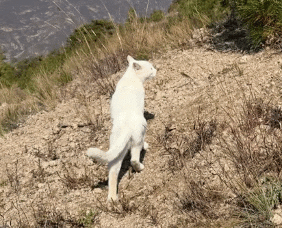 这时灌木丛里突然窜出来一只白猫,