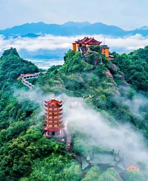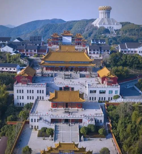 兜率天这个地方很多外地人不知道,但本地人春节会去,因为这里有个天宫,建在半山腰,气势很足。这个景区设计得挺有意思,它不是单纯的宗教场所,是把佛教文化和江南山水揉在一起了,你爬上去能看到整个绍兴的城景,天气好的时候视野特别开阔。