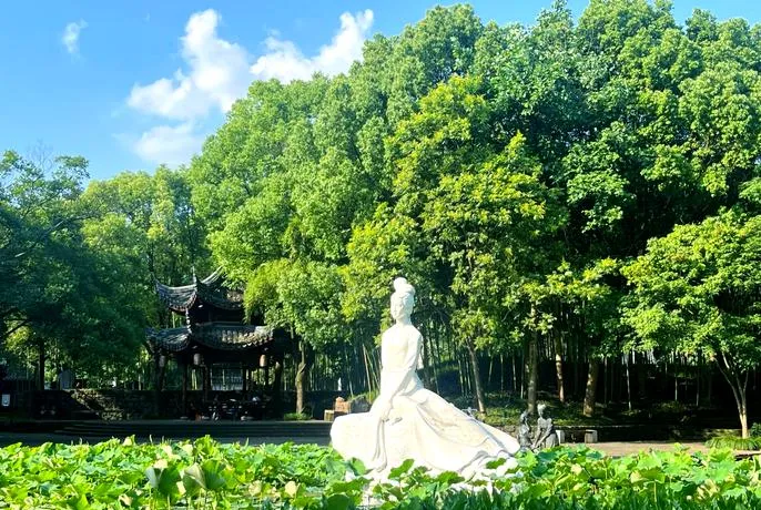 西施故里在诸暨,离绍兴市区不远,这个地方建得挺大气的,但它不是在神化西施,是在还原一个浣纱女怎么从这个小地方走出去的。这个景区设计得聪明的地方在于它没有回避西施被当作政治工具的事实,也没有刻意拔高她的选择,只是陈述了一个人的一生。