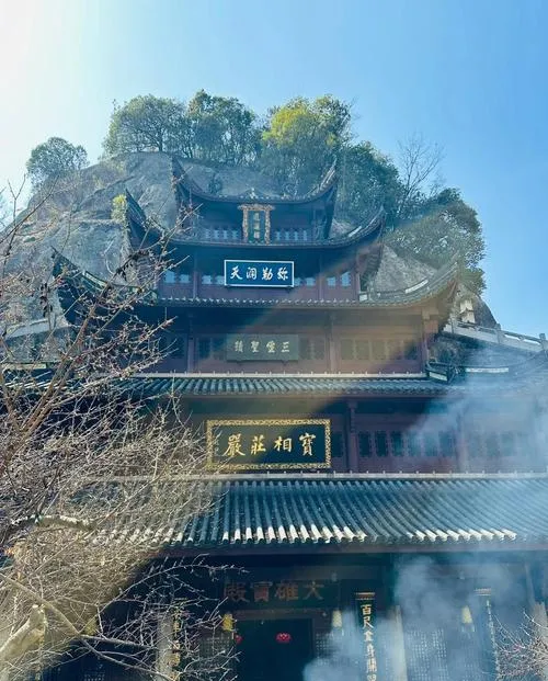 新昌大佛寺在绍兴下面的新昌县,这个寺庙最出名的是那尊石窟弥勒佛,高16米多,是南朝时期雕的,在岩壁里坐了一千多年。这尊佛厉害的地方不是它有多大,是它让你明白什么叫"稳",一千多年风吹雨打,它就在那坐着,不动。