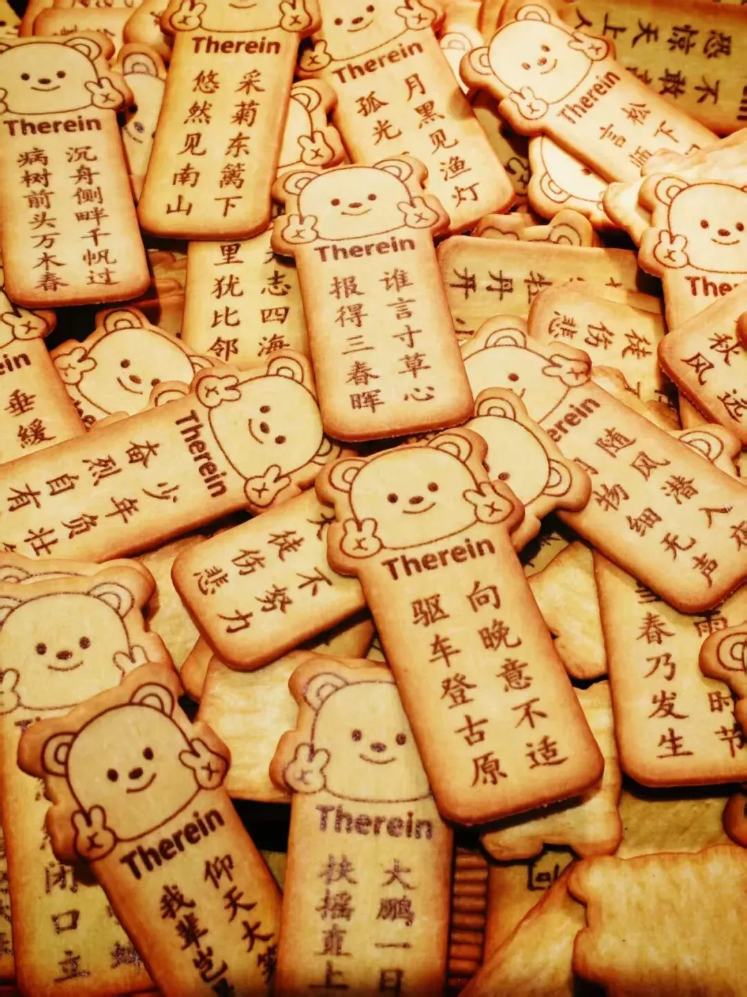 揉三分月色,和一缕诗香,把平仄揉进酥皮,将雅韵焙入甜香。一枚诗词饼干,轻咬一口,酥脆裹着墨趣在舌尖流转,满是文心雅趣。
