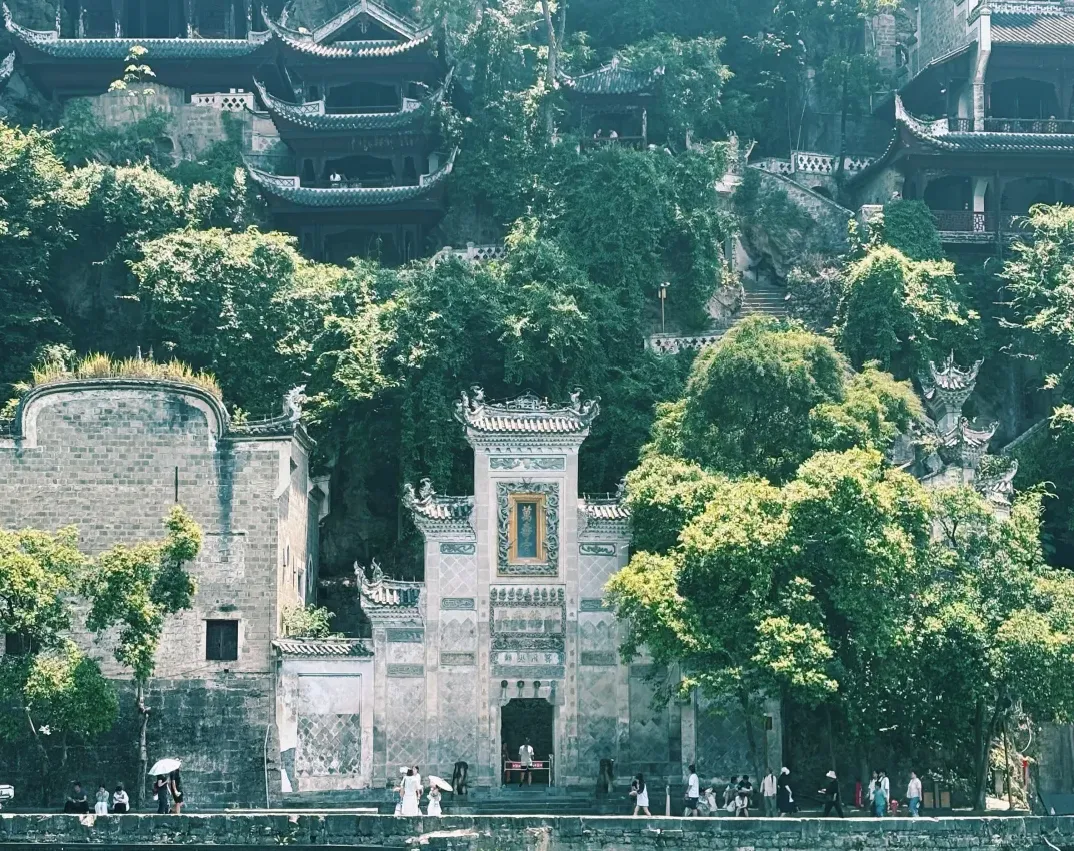 青龙洞得慢慢看,道、佛、儒都在一坡,廊桥连着殿阁,木柱落在岩缝里,石壁上刻字一排排,明清年款看得清,钟一敲,山谷回声像旧录音,照片不急拍,先抬头看梁,再低头看脚下,台阶湿,鞋底要抓地。