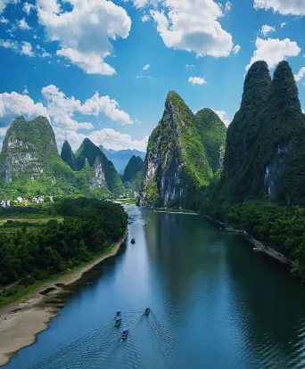 4.桂林漓江景区 乘竹筏顺流而下 看九马画山黄布倒影 感受山水画卷