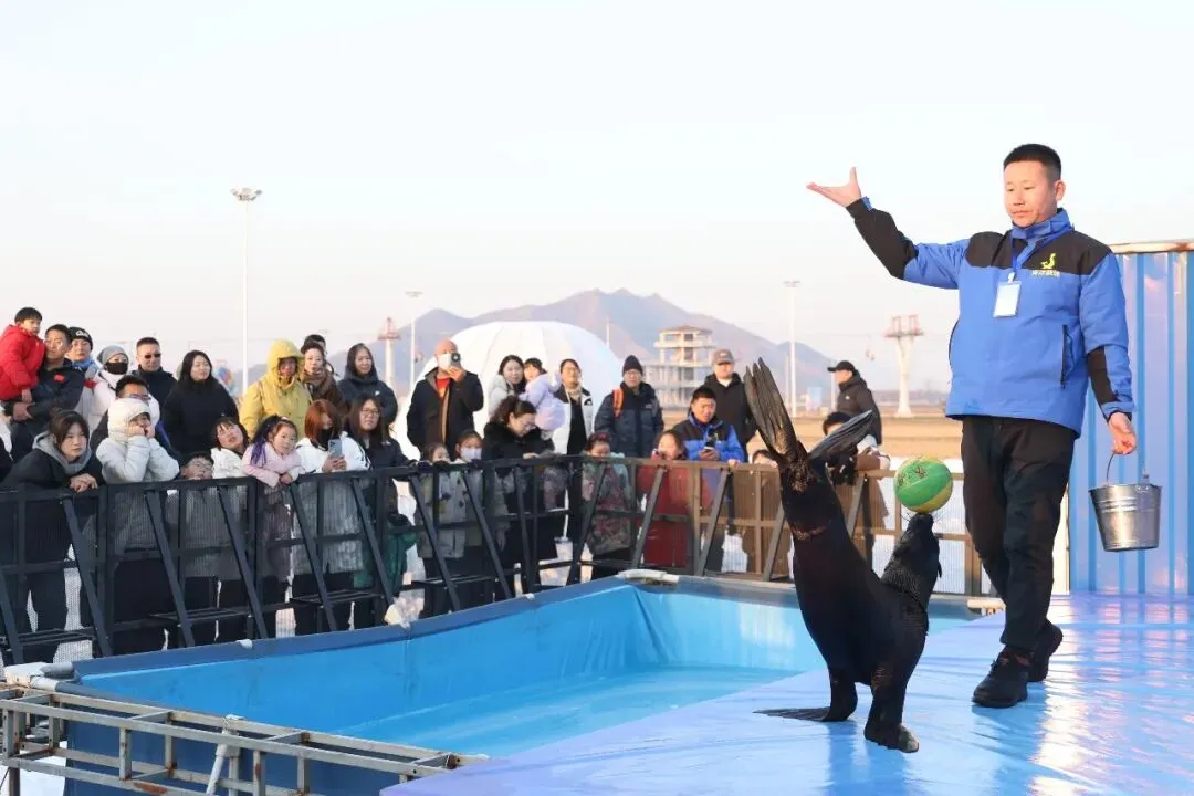 好玩有趣的冰雪项目人气火热,精彩纷呈的活动现场热闹非凡。极地海洋村、雪乡大舞台等活动现场,杂技表演、乡村蹦迪、海洋生物NPC大巡游等活动让游客大呼过瘾。作为本次活动的“流量担当”,极地海狮表演人气爆棚。呆萌可爱的海狮上演顶球、鼓掌、跳舞等绝技,引得现场喝彩声不断。