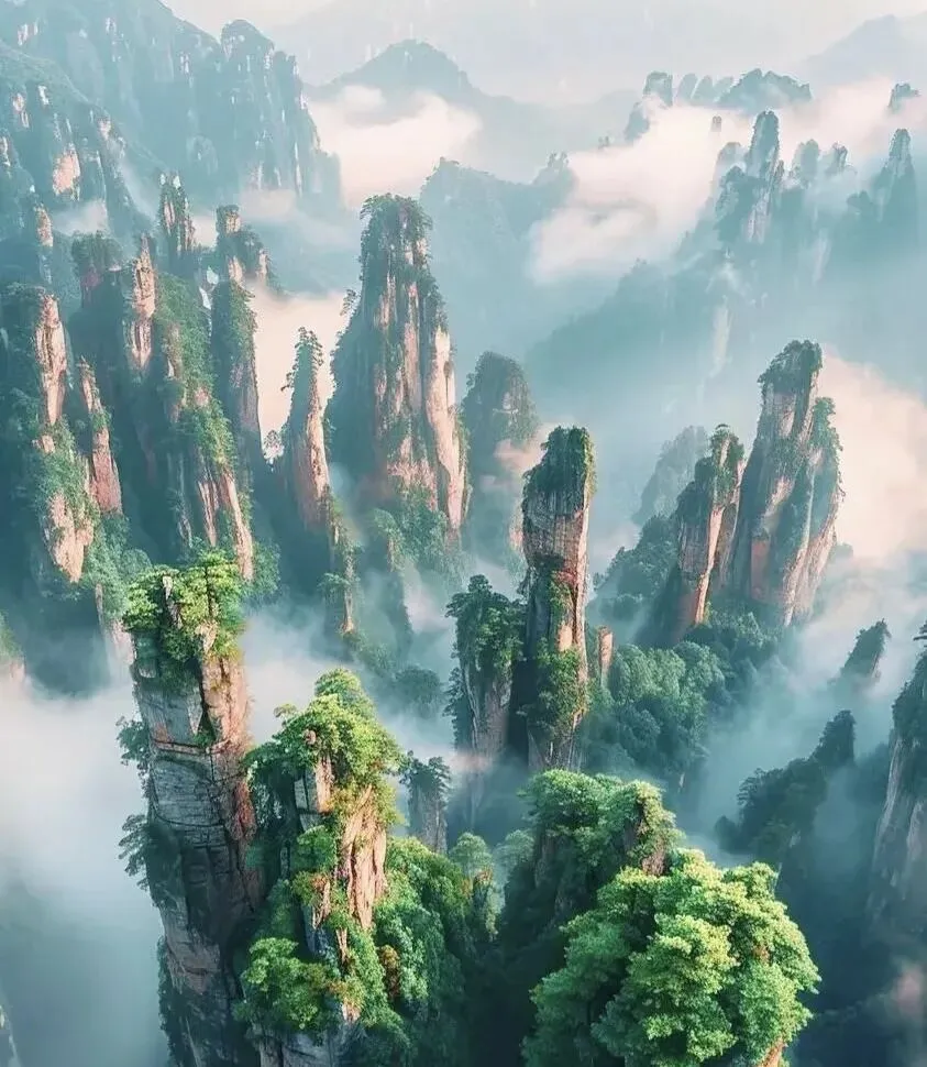 张家界,以三千奇峰拔地而起、八百秀水蜿蜒纵横的独特景观闻名于世,是《阿凡达》中悬浮山的取景地。这里的石英砂岩峰林地貌是地质学上的独一份,袁家界、天子山、金鞭溪等景点美不胜收。漫步其间,仿佛踏入仙境,能感受到大自然的鬼斧神工,正如“奇峰异石立天地,云海缥缈似仙境”所描述的那样。
