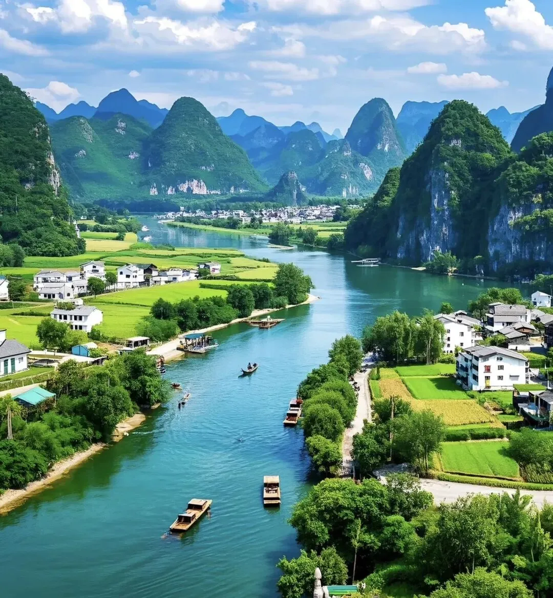 以“江作青罗带,山如碧玉簪”著称,桂林漓江景区是岩溶山水游览区的代表,境内有“一江、两洞、三山”等景点,阳朔漓江景区杨堤-兴坪段被誉为世界上最美的岩溶山川,素有“桂林山水甲天下,阳朔山水甲桂林,阳朔美景在兴坪”的美称,20元人民币背面的风景取自兴坪佳境。