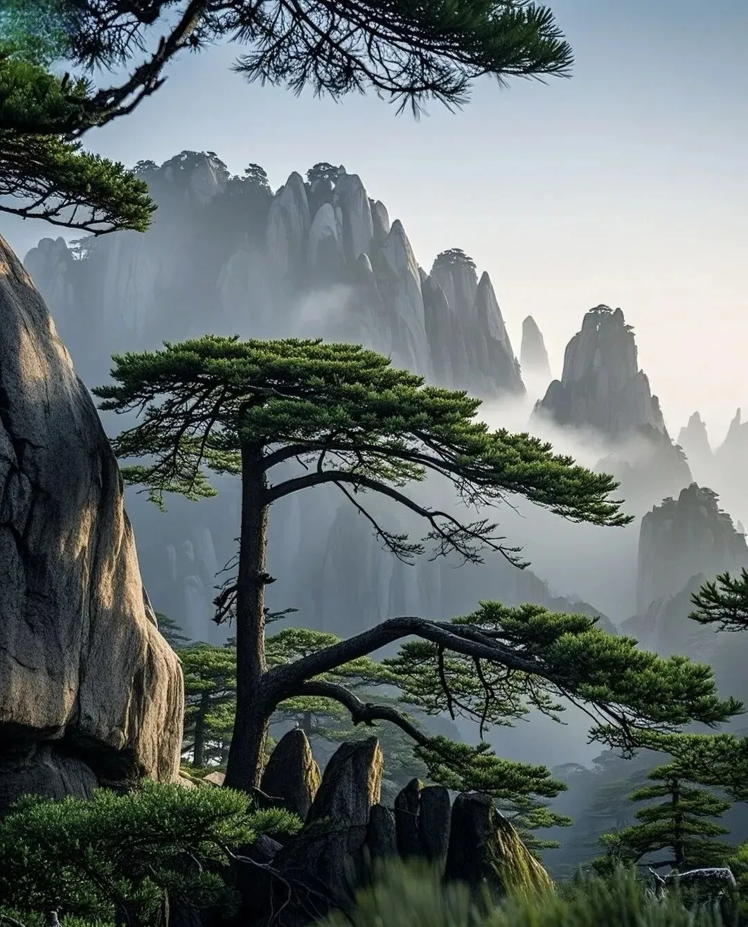 黄山,有“天下第一奇山”的美称,其奇松、怪石、云海、温泉、冬雪“五绝”闻名于世。黄山最高峰为莲花峰(海拔1864米),与光明顶(1860米)、天都峰(1810米)并称三大主峰,其中天都峰以险峻闻名。登上黄山,便能体会到“五岳归来不看山,黄山归来不看岳”的绝妙意境。