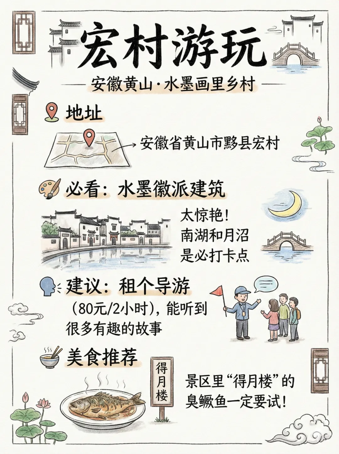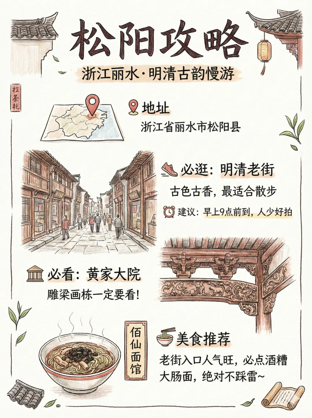 穿舒适的鞋:古村石板路,要穿防滑、舒适的平底鞋。 带好常用药:肠胃药、感冒药、降压药,别指望到了再买。 避开节假日:工作日去,人少、价格便宜、玩得更舒服。 尊重当地居民:古村里还住着当地人,拍照前先征得同意。