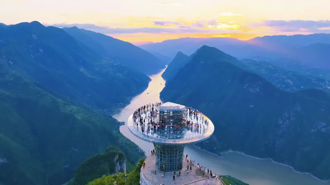 长江灵芝:景区最具标志性的观景平台,因形似灵芝而得名,可360度俯瞰“长江第一拐”全景,还是拍摄金色峡江的取景地。