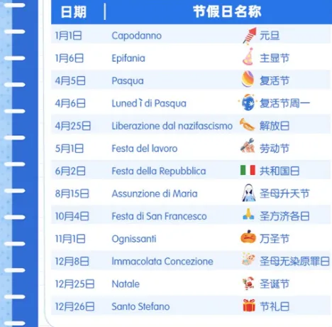 8月是意大利度假月,商店、餐厅关门,公交少;复活节、圣诞拥挤,住宿价翻倍。