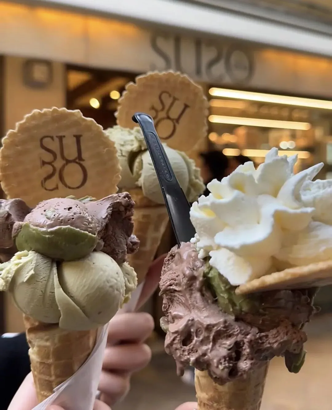 相比美式冰淇淋,满街的意式Gelato脂肪含量低(4-8% vs 14-25%),但保质期短(现做现吃)。