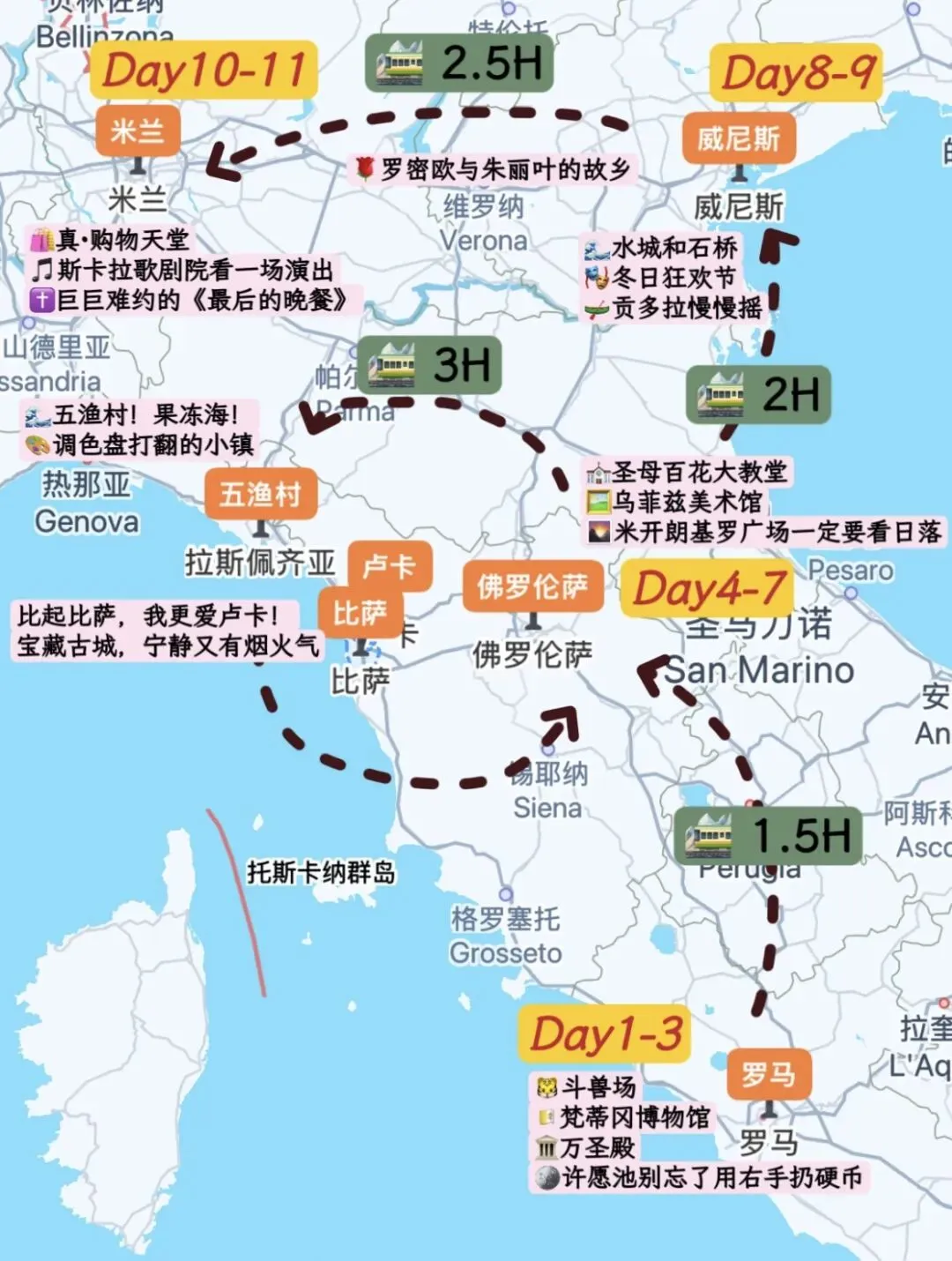 佛罗伦萨2天+锡耶纳1天+皮恩扎1天(5-6月麦田,9-10月葡萄季)+卢卡1天(很小,可取舍)