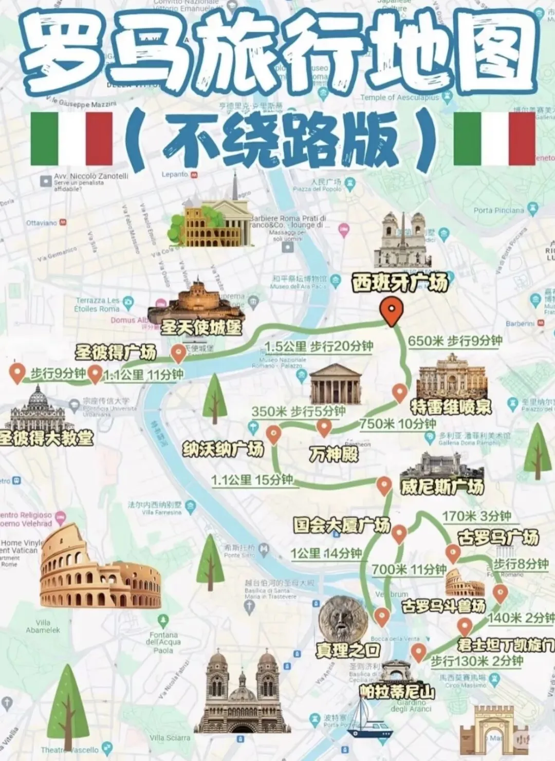 罗马:景点散,历史中心区/斗兽场区首游,梵蒂冈区安静,特米尼车站周边预算友好,但需注意安全。