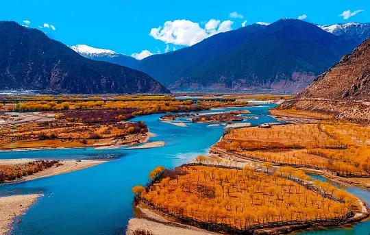 鲁朗景区,藏语意为"龙王谷",被誉为"神仙居住的地方",是川藏线上一颗璀璨的明珠。当您穿过色季拉山垭口,眼前豁然展开一片典型的高原山地草甸狭长地带,两侧青山由低往高分布着灌木丛和茂密的云杉、松树,中间是整齐划一的草甸,溪流蜿蜒,野花遍野,勾画了一幅恬静优美的"山居图"。这里四季景色各异,春季杜鹃怒放,夏季绿意盎然,秋季层林尽染,冬季雪覆林海,是名副其实的"天然氧吧"和"生物基因库"。