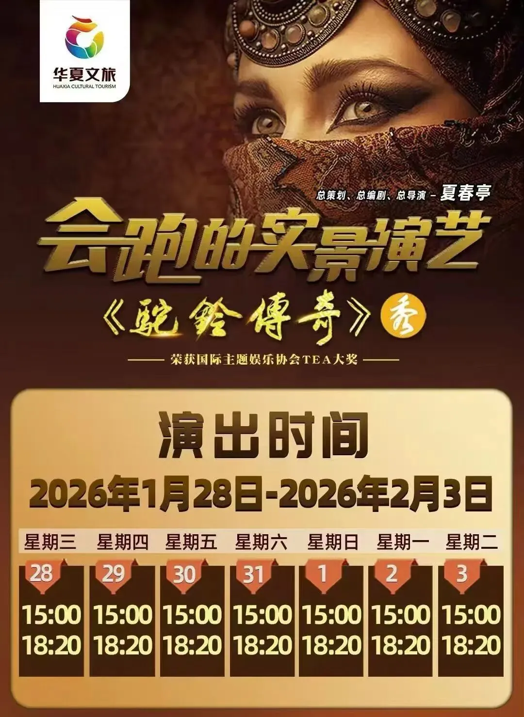 【西安旅游】驼铃再响,丝路传奇归来.驼铃传奇秀公布演出时间表(1月28日-2月3日