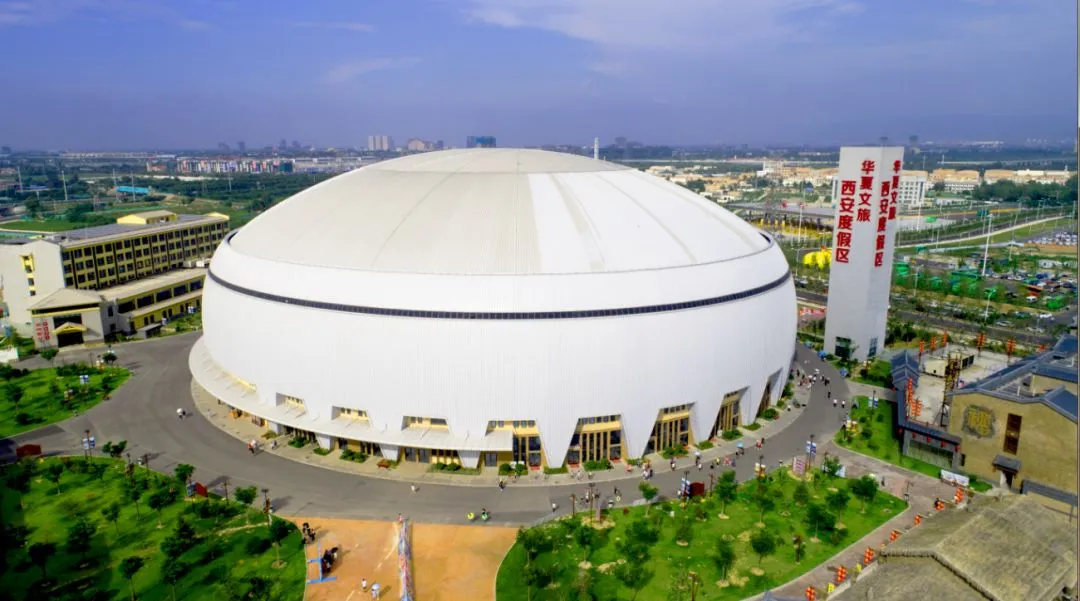 西安华夏文旅大剧院作为华夏文旅西安度假区项目的标志性建筑,设计为一座长142米,宽128米,高约50米的大型椭球体建筑物,可容纳3000人同时观看演出。剧场中央巧妙设计并修建一座可移动观众席,打破了世界单一舞台演出模式,通过旋转行走看台将观众送至最佳观演位置,带给观众全新的视听享受。