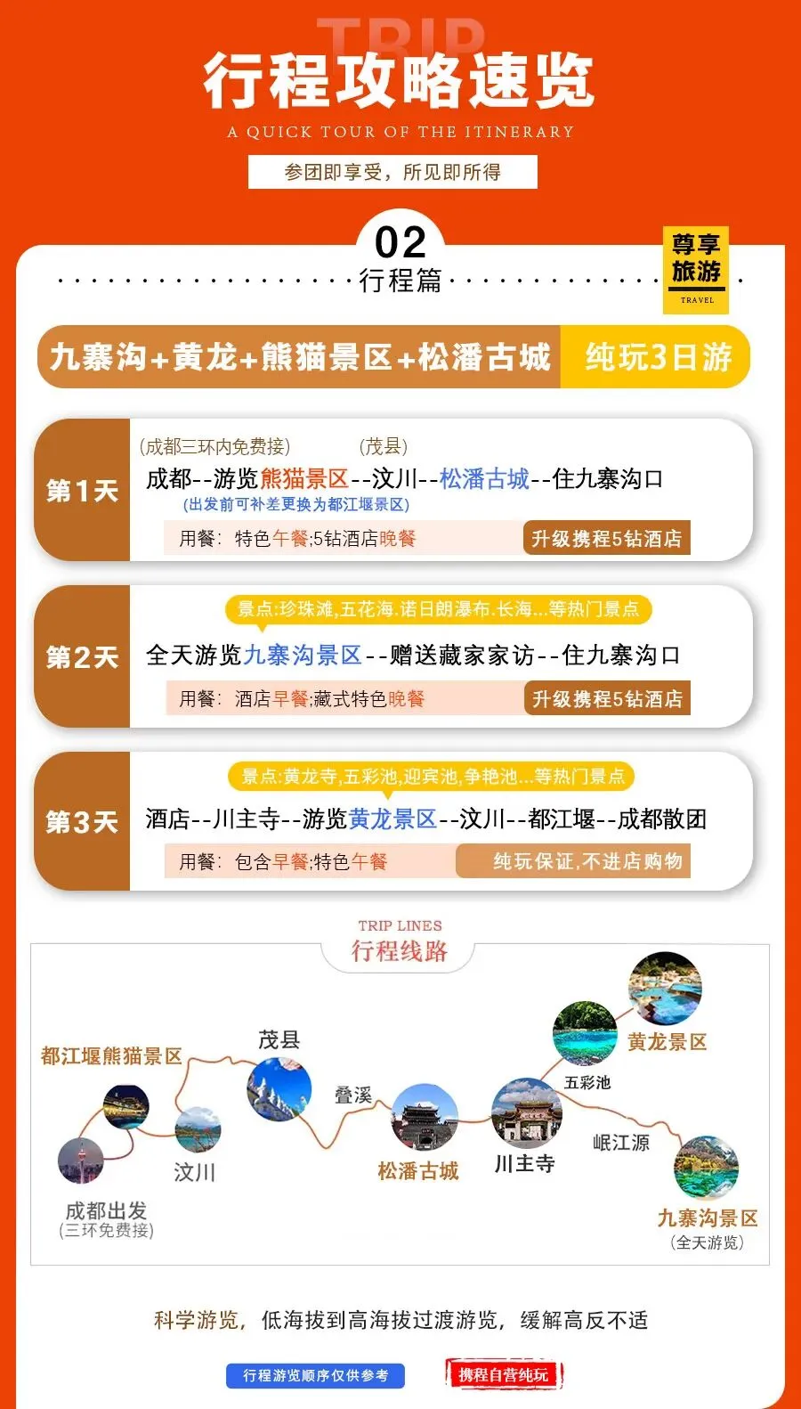 【35人团】九寨沟+黄龙风景名胜区3日2晚跟团游纯玩销量T0P1+国际品牌5钻酒店+熊猫『高铁往返BC+保证有票』5钻酒店晚餐+升保姆车