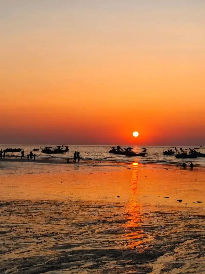 沙滩很宽阔,海水清澈, 夕阳把整个沙滩都染成金色 。我特别喜欢在这里光着脚踩着海水走,看远处的日落慢慢沉入海平面。
