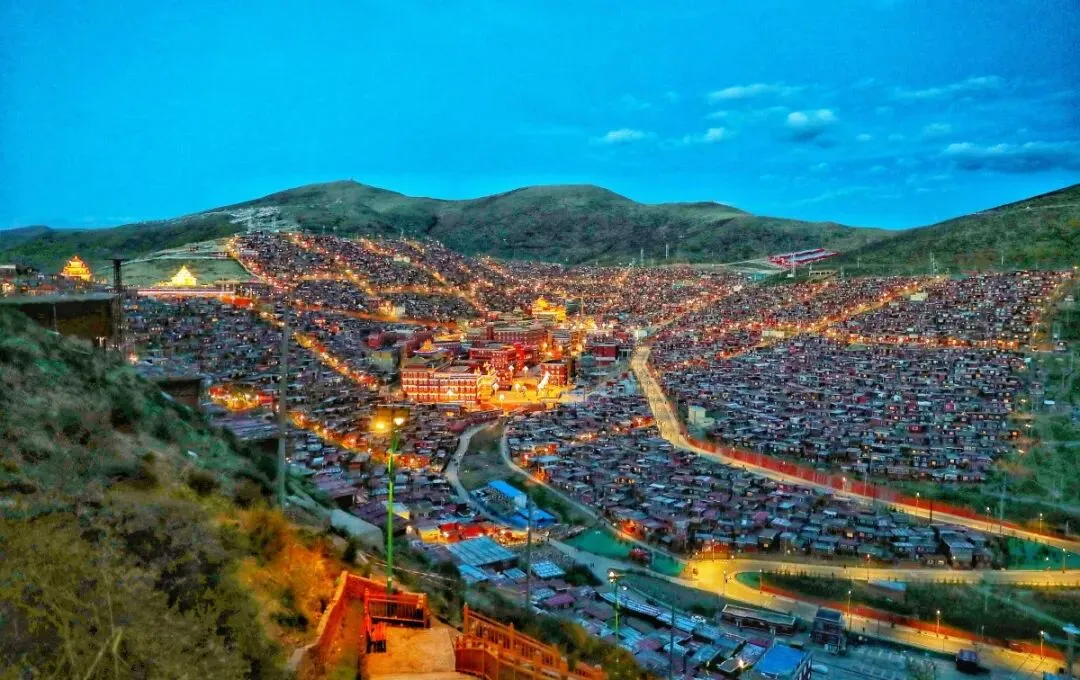 漫山的红色僧舍在夕阳照射下更加庄严, 那种震撼是会让人静下来思考人生的 。在坛城看日落,可以俯瞰整个色达,感受信仰的力量。