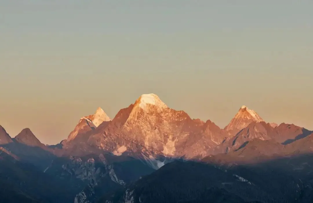 三神山在夕阳照射下变成金红色, 真的就是传说中的日照金山 。在洛绒牛场看日落,前景是草甸,背景是雪山,层次感特别丰富。