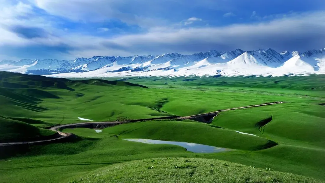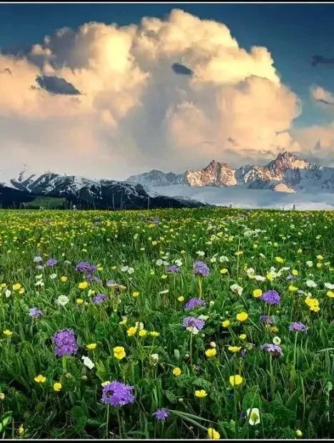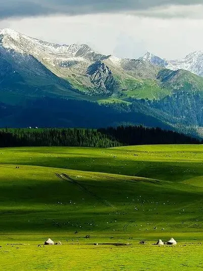 白雪皑皑的山峰、茂密的森林、连绵起伏的山丘、平坦的草甸,蜿蜒的溪流,那拉提草高花旺,碧茵似锦,非常美丽,是世界最美河谷草原之一,历史上的那拉提草原有鹿苑之称。