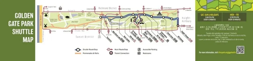 路线图网址:https://sfrecpark.org/1617/Golden-Gate-Park-Free-Shuttle