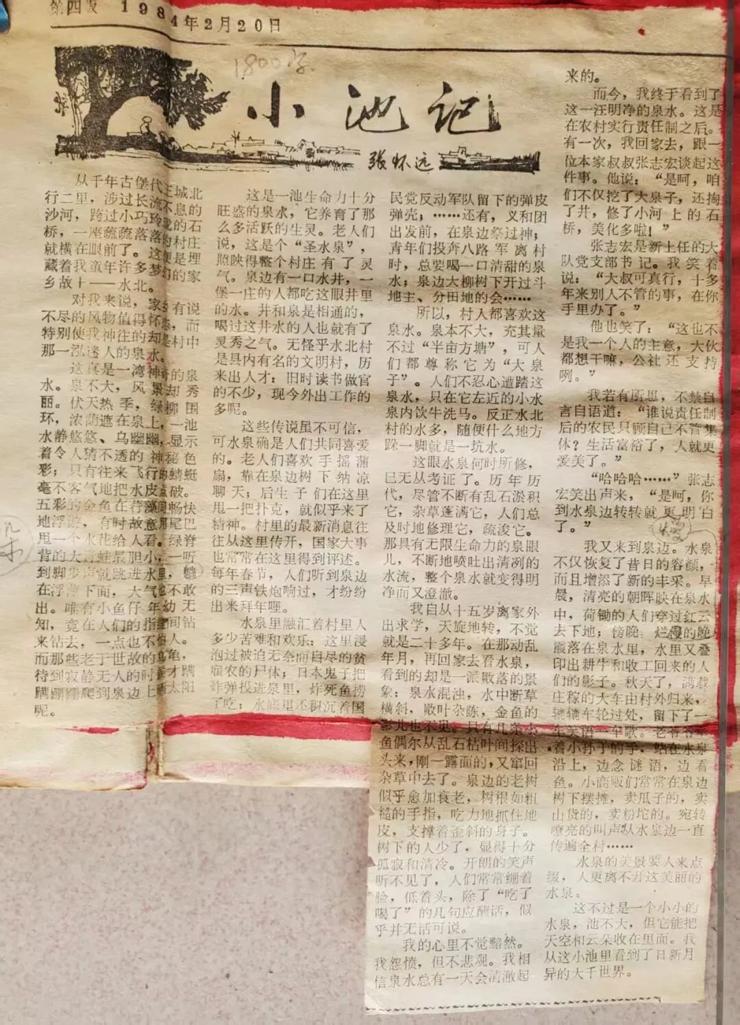 (1984年2月20日,我发表在《张家口日报》第4版上的《小池记》,写的就是水北村的大泉。)