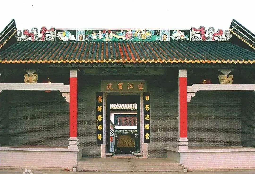 庐江书院,位于今广州市越秀区西湖路流水井29号,是广肇两府60多个何姓家族出资合建。曾于道光、光绪年间两度重修,书院建筑秀美,装饰细腻,是广州书院群保存比较完整的合族祠书院。