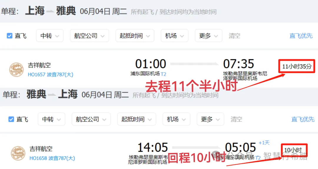 (上海到雅典直飞,不是每天飞)
