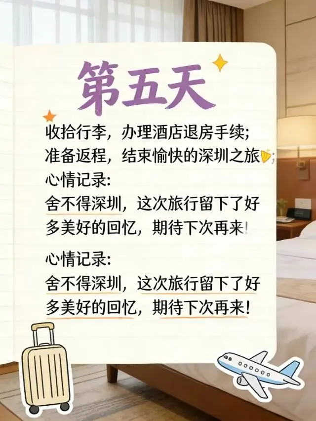 ,你们有没有去过深圳呀?对于深圳的美食、景点,你们有什么独特的体验和推荐吗?或者你们对我这次的深圳之旅安排有什么建议和想法呢?欢迎在评论区留言分享,让我们一起交流,说不定下次的旅行手账就能融入你们的精彩点子啦😜 也可以说说你们最想去的城市,说不定下一篇手账就是为你而写哦!”❤️